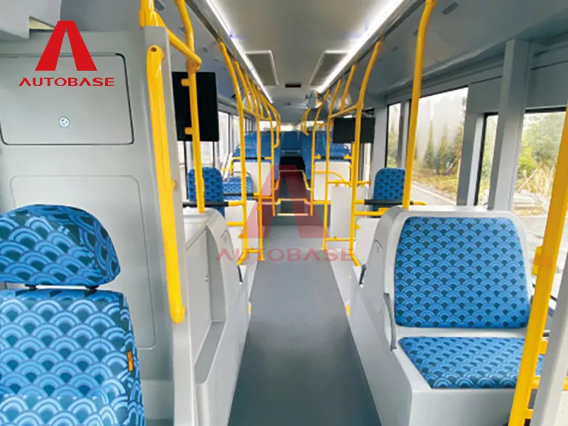 A: 10,7 м таза электрлік автобус жалпы сыйымдылығы 54 жолаушы және 1 жүргізуші бар жоғары тығыздықтағы маршруттарға арналған. Онда 25 бекітілген орындық, сонымен қатар 4 жиналмалы орындық және икемді пайдалануға арналған 4 тағайындалған басымдық бар. Бірегей ерекшелігі - артқы жағындағы кіріктірілген 6 орындық демалыс бөлмесі, жолаушыларға жайлылықты арттырады.