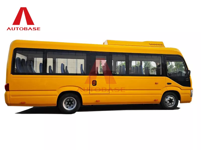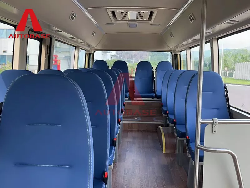 A: Автобустың жалпы ұзындығы 7 250 мм (7,2 м) және ені 2 240 мм болатын ықшам, бірақ кең дизайны бар. Оның жалпы сыйымдылығы 22 жолаушыны, сонымен қатар жүргізушіні құрайтын 2+1 отыру схемасы бар.